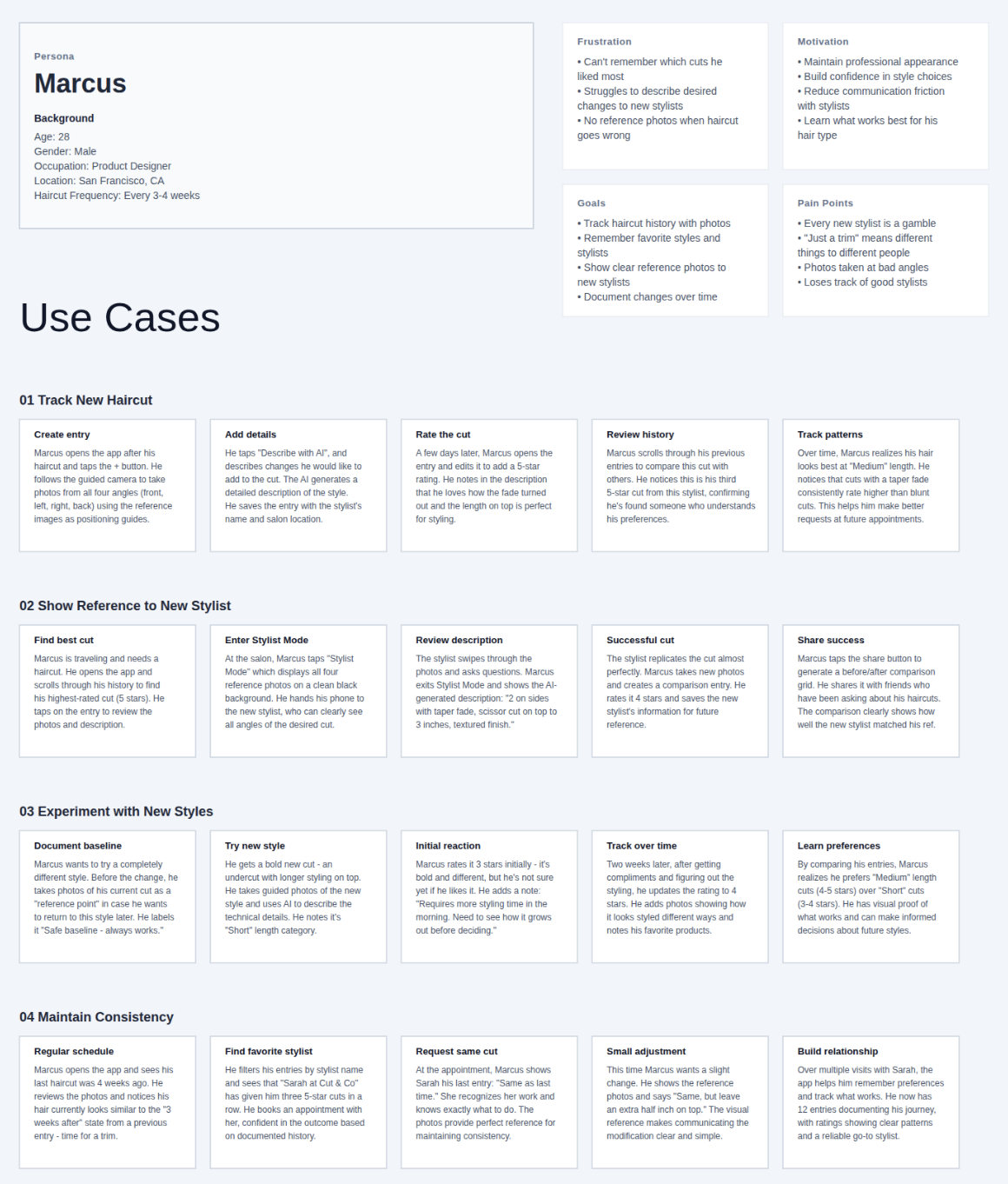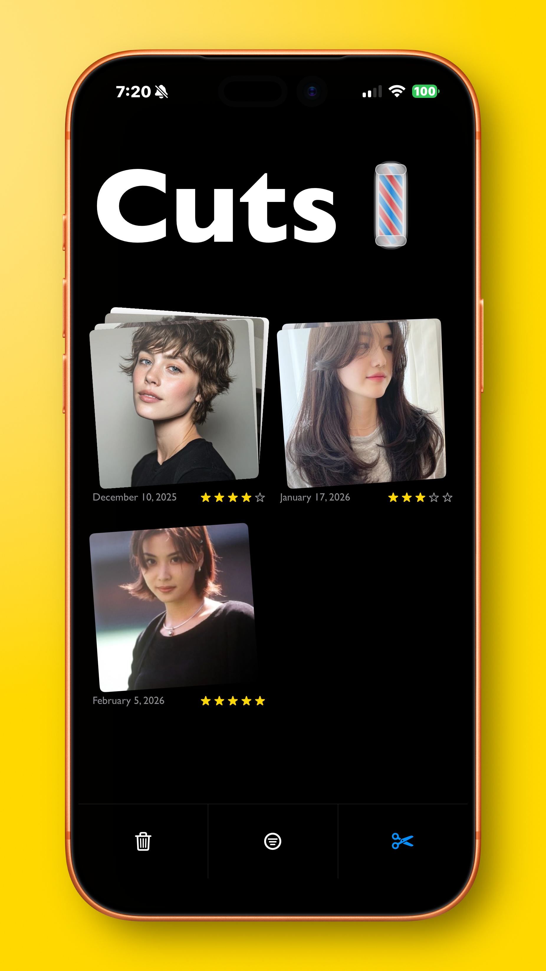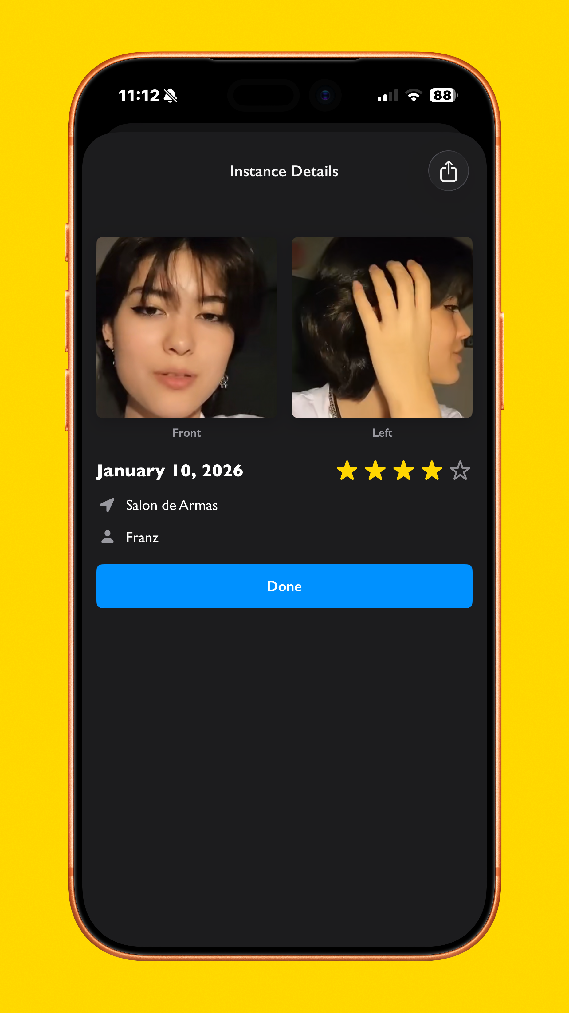 After a new cut is created, it brings users to the cut detail screen, showing a grid of the selected photos, desired changes, cut history, and a way to open Stylist Mode. That mode shows only what is necessary for the stylist, allowing them to scroll through the references, and see any desired changes requested, if any.