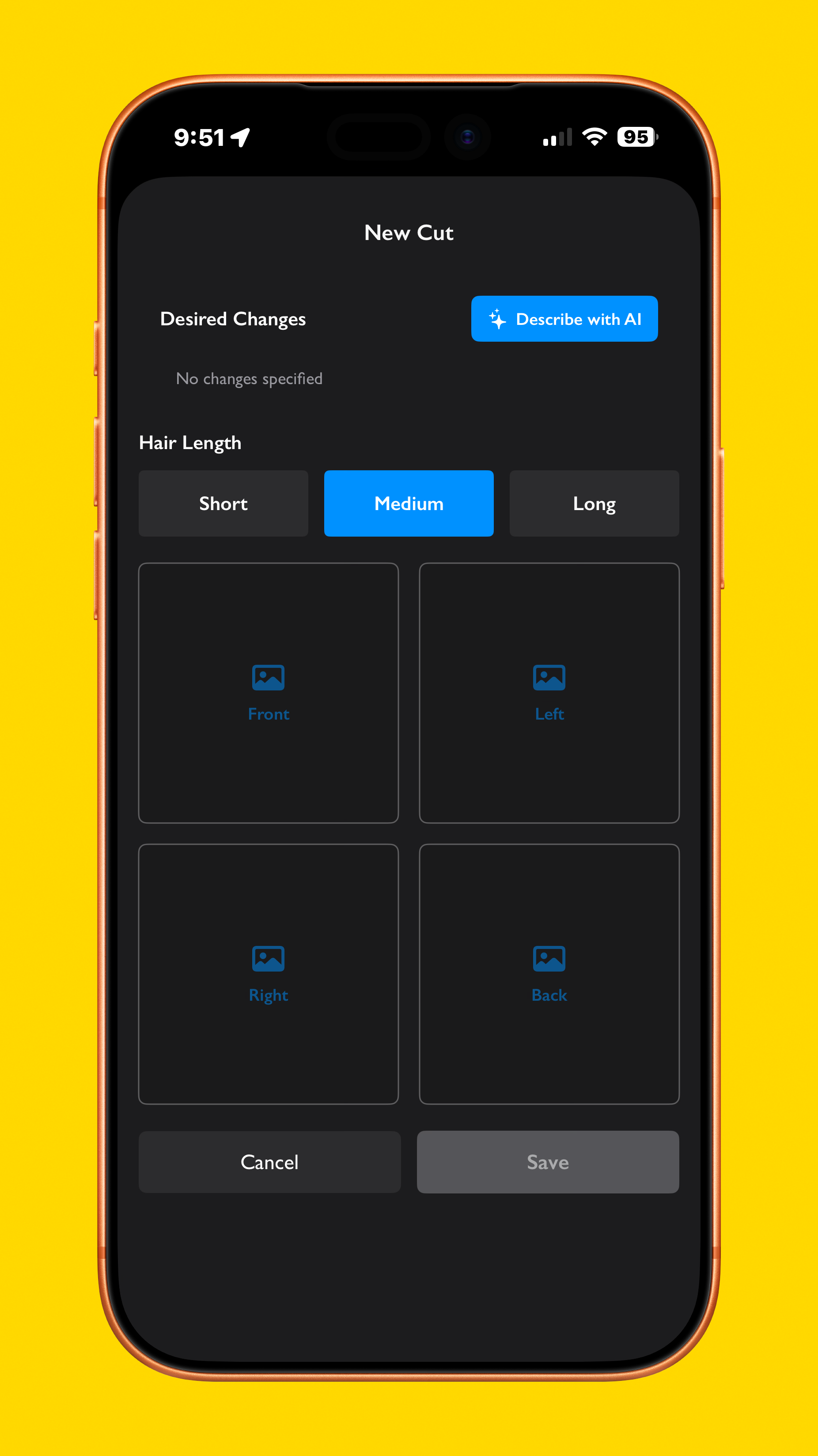 Sometimes even when we like a certain hairstyle, we might want some changes to make it better suit us and our faces, so the new cut screen lets you input any changes you’d like, and using Apple’s Foundation Models framework, it even asks you for what changes you’d like, then summarizes it. Additionally, if you are taking a photo of the hairstyle instead of importing a photo, the app gives you a reference for what they should look like.