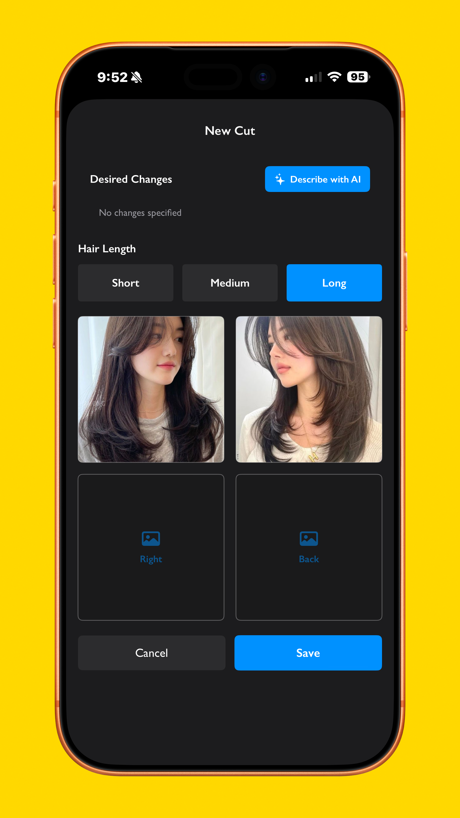 Functionality to tell the stylist how they want the style to be changed for their hair (bangs, length, etc.)