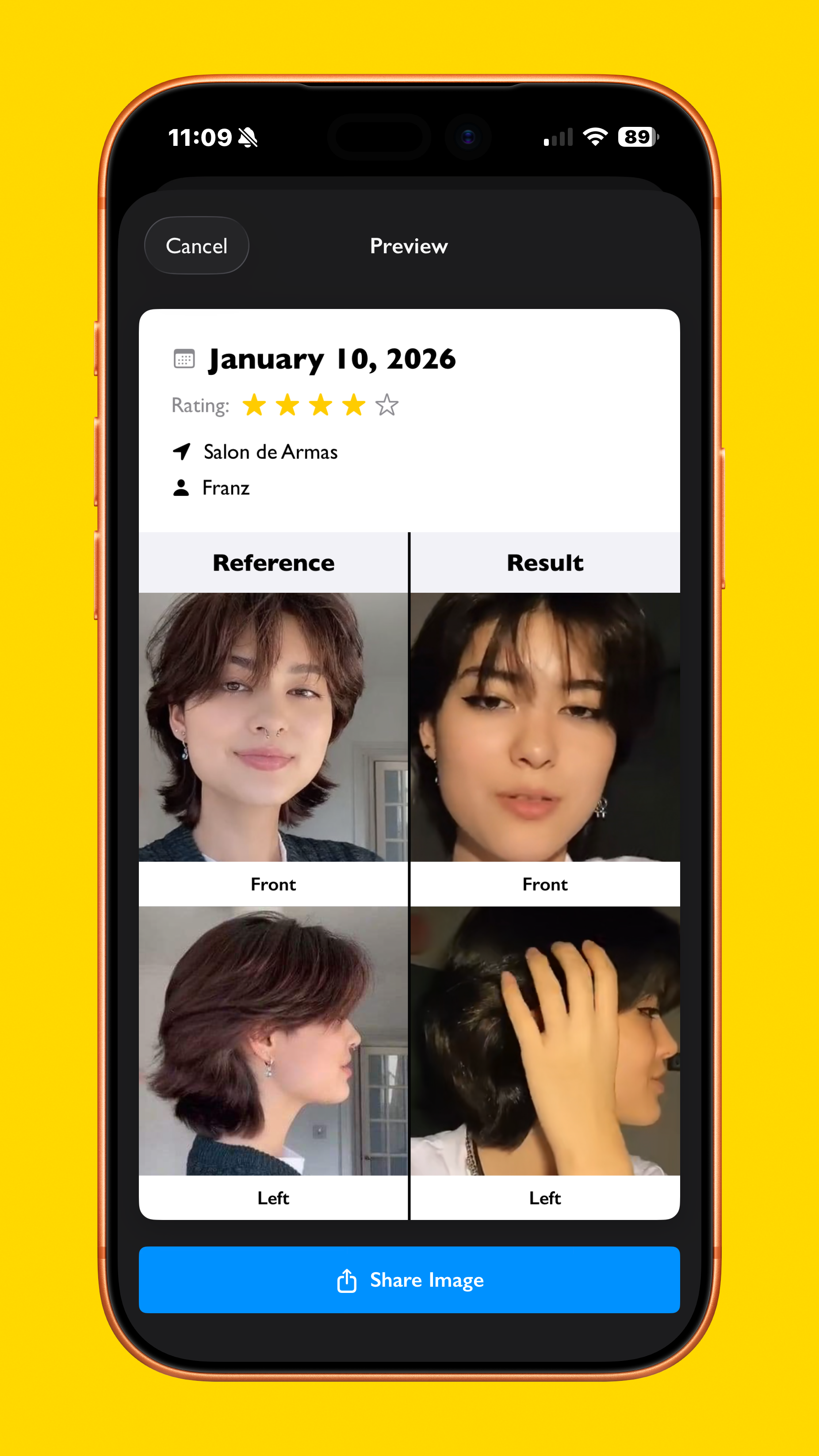 After getting a cut, you can log it with the date, name of the salon and stylist, personal rating, and of course, your own pictures. It shows up in a screen that easily fits all info in one screen, and multiple logs can be created. For sharing to friends and social media, a side-by-side view lets you compare the reference to the final cut and show off your new look.